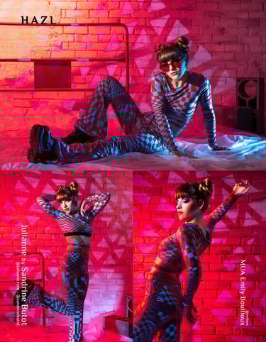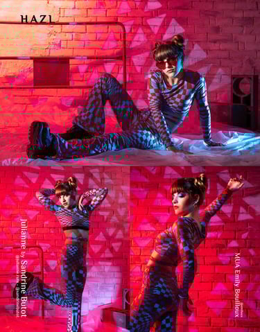 Une image peut naître d’une réflexion à partir d’un objet, d’une combinaison de formes/couleurs, d’une ambiance, ou encore d’un décor que j’ai fabriqué… J’ai une idée de départ, je réalise beaucoup de croquis mais le portrait va se construire définitivement le jour J en fonction du.de la modèle et de l’impulsion de l’instant.